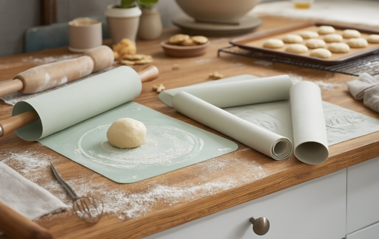 - Materialstärke – Achte auf eine gleichmäßige Materialstärke und robuste Silikon-Qualität, damit sie formstabil bleibt und sich nicht verzieht. Stabile Backmatten verbessern das Rollverhalten und die Lebensdauer deutlich.